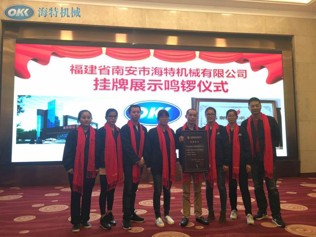 2016年11月22日,泉州首批科技型創(chuàng)客企業(yè)在海峽股權(quán)交易中心集體掛牌,海特機(jī)械董事長劉海濱上臺(tái)鳴鑼,響徹的鑼聲標(biāo)志著海特機(jī)械正式與資本的對接,意味著企業(yè)進(jìn)入了更為多元和便捷的融資平臺(tái),供助這一平臺(tái)獲得更多的優(yōu)勢資源。