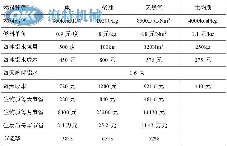 以一臺(tái)280噸壓鑄機(jī)為例,每天24小時(shí)生產(chǎn),一天出4000模;每模為400g計(jì)算;每天消耗鋁水1600kg;以每月工作30天,每年工作300天計(jì)。各種燃料所需成本對比: